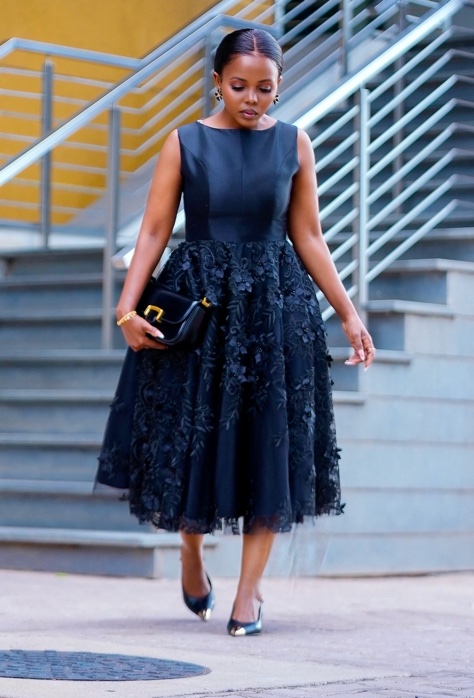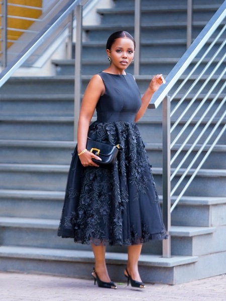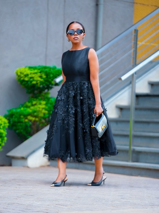 Perfect for evening soirées, weddings, or elegant dinners, this piece effortlessly balances grace and confidence. The textured floral details add depth and movement, while the classic black hue makes it a wardrobe essential for every season.