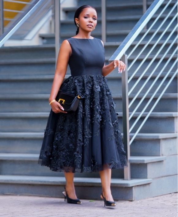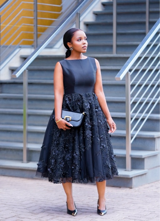 Step into timeless sophistication with the Black Rose Bloom Dress. Crafted to flatter every silhouette, this sleeveless midi dress features a structured bodice that flows into a full, embroidered skirt — reminiscent of soft black rose petals in bloom.